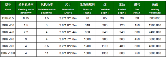 生物質燃燒機技術參數